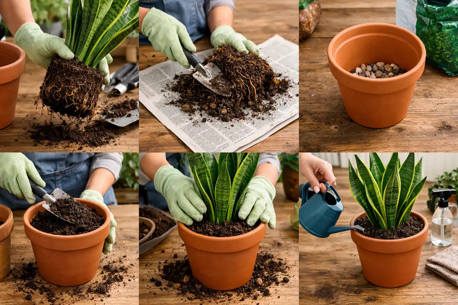 Repotting snake plants means transferring them into a slightly larger container with fresh, well draining soil to improve root space, prevent root rot, and support long term growth. The best time to repot is spring or early summer when the plant is actively growing and can recover quickly.