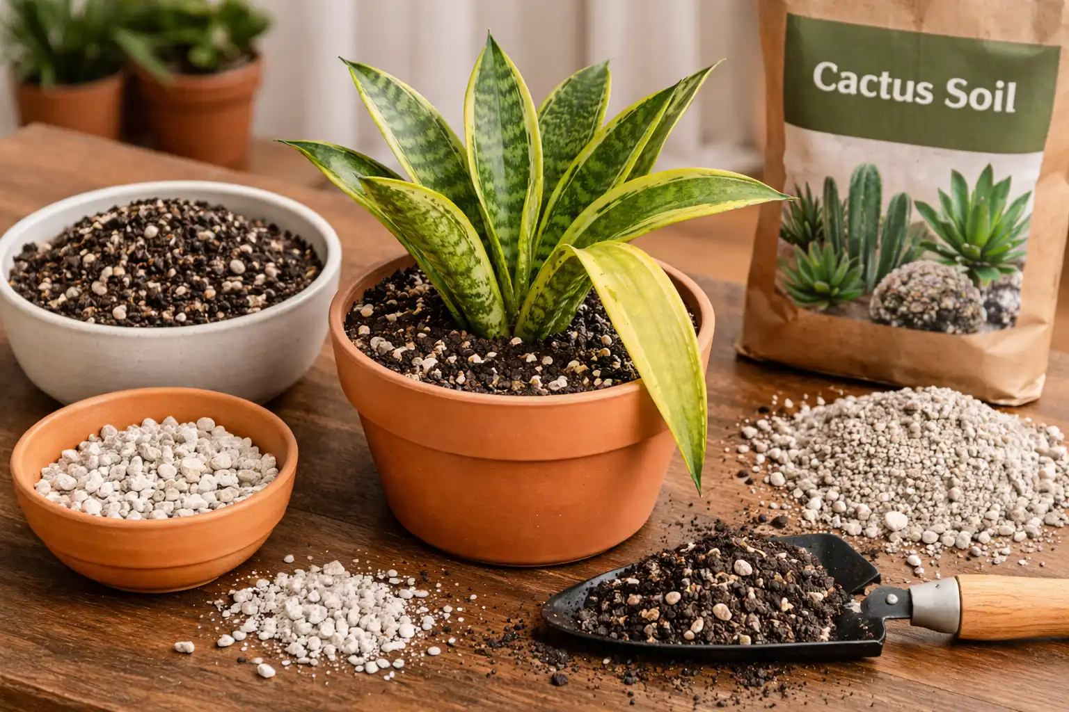 The best snake plant soil is a well-draining, airy mix that prevents water from sitting around the roots. A cactus or succulent potting mix works perfectly, especially when improved with perlite or pumice for extra drainage. Snake plants hate soggy soil, so fast-draining soil is the key to healthy growth. Choosing the correct snake plant soil type is the foundation of long-term plant health.